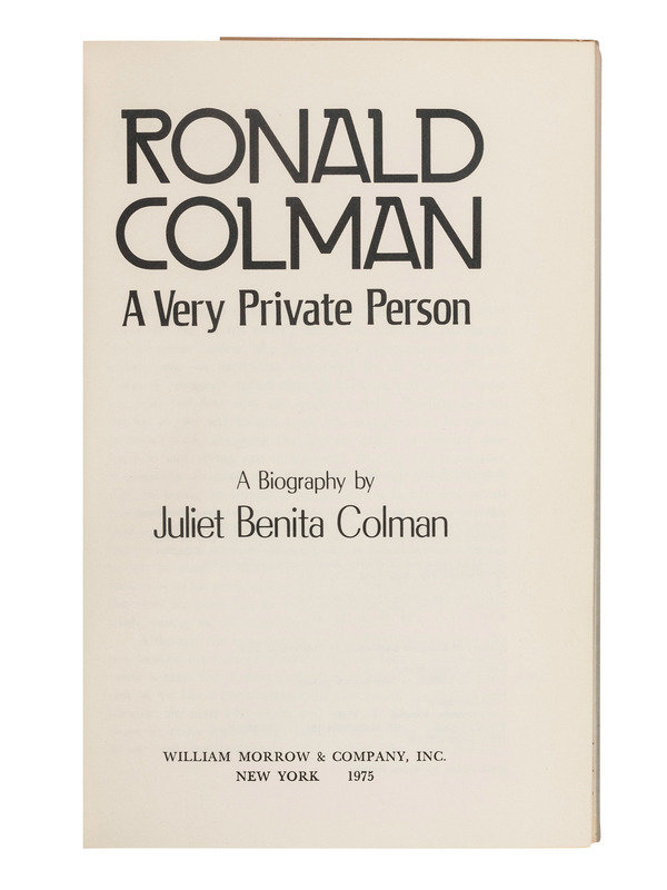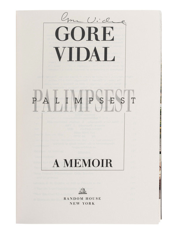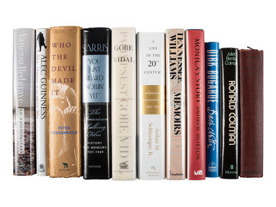 BOGDANOVICH, Peter. Who the Devil Made It: Conversations with Legendary Film Directors. New York: Alfred A. Knopf, 1997. SIGNED BY BOGDANOVICH. -- GUINNESS, Alec. My Name Escapes Me: The Diary of a Retiring Actor. London: Hamish Hamilton, 1996. SIGNED BY GUINESS. -- WILLIAMS, Tennessee. Memoirs. Garden City, NY: Doubleday & Company, Inc., 1975. INSCRIBED BY WILLIAMS: "For Paul Palmer, Tennessee Williams." -- VIDAL, Gore. Palimpsest: A Memoir. New York: Random House, 1995. SIGNED BY VIDAL. -- REDGRAVE, Vanessa. Vanessa Redgrave: An Autobiography. New York: Random House, 1994. INSCRIBED BY REDGRAVE: "For Paul from Vanessa Redgrave." -- SCHLESINGER, JR., Arthur M. A Life in the Twentieth Century: Innocent Beginnings, 1917-1950. New York: Houghton Mifflin Company, 2000. SIGNED BY SCHLESINGER, JR. -- DRESSLER, Marie. The Life Story of an Ugly Duckling. New York: Robert M. McBride & Company, 1924. SIGNED BY DRESSLER. -- MORTON, Andrew. Monica's Story. London: Michael O'Mara Books Limited, 1999. SIGNED BY MONICA LEWINSKY. -- COLMAN, Juliet Benita. Ronald Colman: A Very Private Person. New York: William Morrow & Company, Inc., 1975. SIGNED BY COLMAN. -- SARRIS, Andrew. You Ain't Heard Nothin' Yet: The American Talking Film, History and Memory, 1927-1949. New York: Oxford University Press, 1998. INSCRIBED BY SARRIS: "To Paul Palmer, Happy Moviegoing! Cheers! Andrew Sarris, 6/23/98." -- BOGARDE, Dirk. Backlash. England: Viking Penguin Inc., 1986. SIGNED BY BOGARDE.