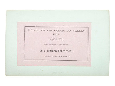 6 1/8 x 4 3/8 in. stereoview on cardstock mount (toning, light surface soiling and wear to mount). Mount recto bears Powell's U.S. Topographical and Geological Survey imprint. Series title, ("Indians of the Colorado Valley"), view number ("79"), image title, and photographer's credit printed on label affixed to verso.