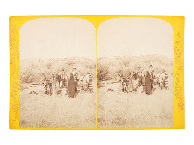 [NATIVE AMERICANS]. BEAMAN, E.O., photographer. Powell Expedition stereoview of Navajos Living in Northern New Mexico.