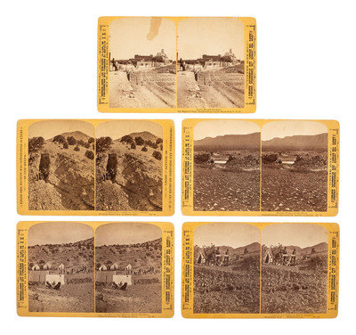 [WESTERN AMERICANA]. BROWN, W. Henry (1844-1886). Group of 5 stereoviews. Santa Fe, New Mexico: Bennett & Brown, ca 1870s-1880s.