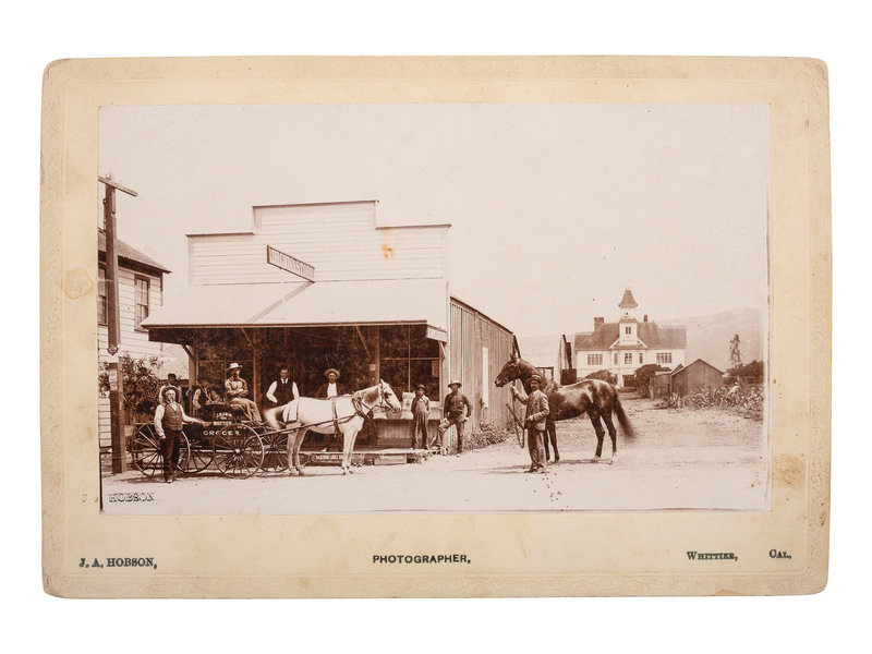 [WESTERN AMERICANA]. HOBSON, J.A., photographer. A view of J.H. Gwin's Grocery Store. Whittier, California: ca 1890s.