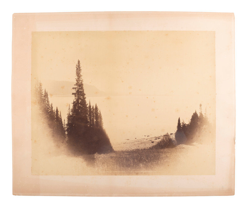 [With:] Yellowstone Lake, Mary's Bay. 16 3/4 x 21 3/8 in. albumen photograph on 21 1/2 x 26 in. cardstock mount (toning and spotting to print; toning and wear to mount, including chipping). Title and credit to W.H. Jackson & Co. written in the lower margin of negative.