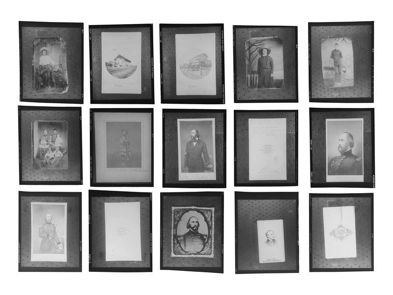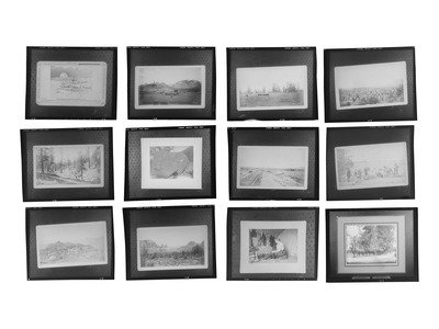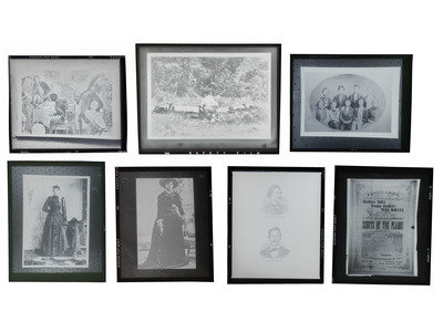 Collection of approx. 350 celluloid negatives, sizes vary, most 2 1/2 x 3 in., each housed in 4 3/8 x 5 3/8 in. acid-free envelope, housed in 3 steel card catalog cabinets. Subjects include Western landscapes, outlaws and lawmen, Indian Wars-era military subjects, Wild West show figures, Native Americans, and others.