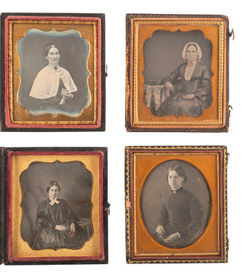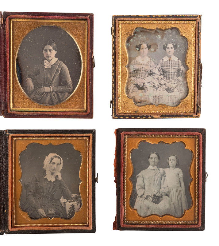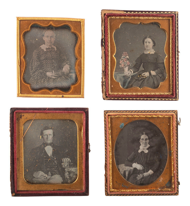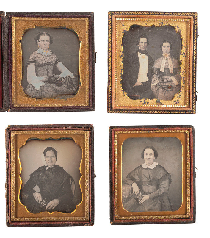 [EARLY PHOTOGRAPHY]. A group of 23 daguerreotypes featuring subjects posed with cased images, including: