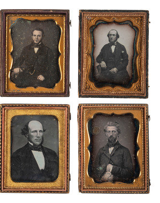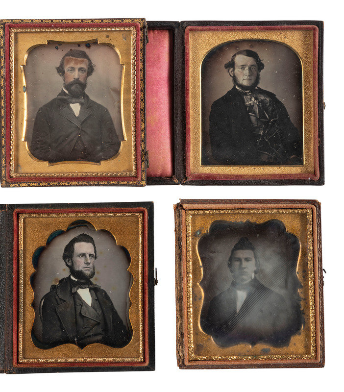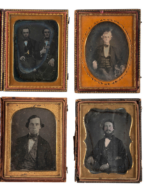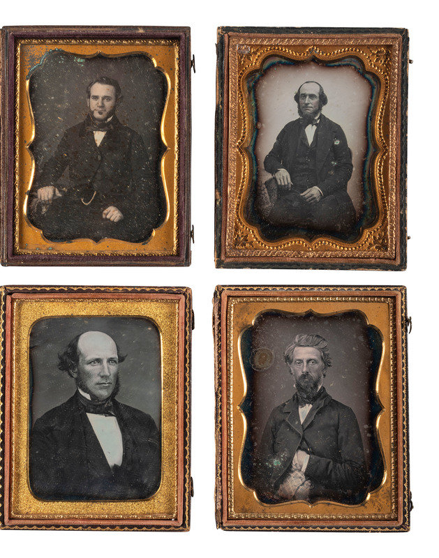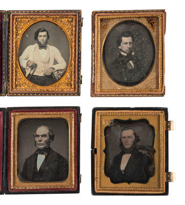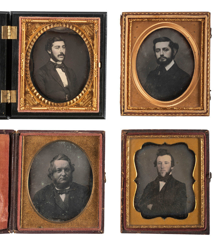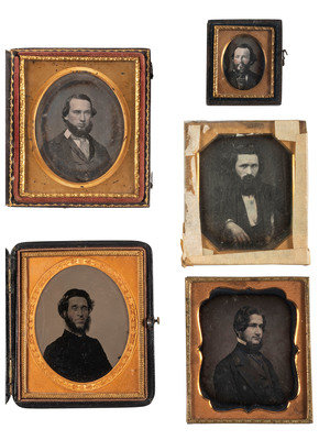 [EARLY PHOTOGRAPHY]. A group of 25 daguerreotype and ambrotype portraits of men with interesting hairstyles and facial hair, including: