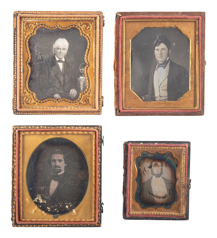 [EARLY PHOTOGRAPHY]. A group of 12 daguerreotypes of men with facial hair or creatively coiffed hair, including portraits by ANSON and BRILL.