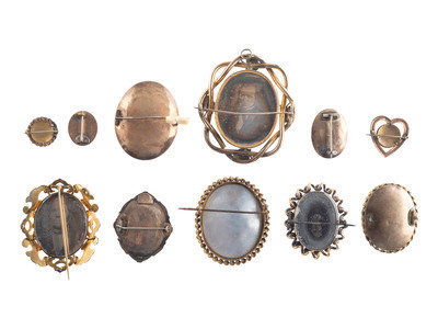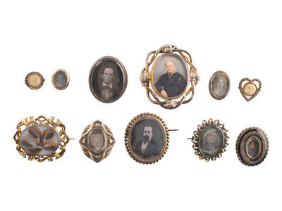 [EARLY PHOTOGRAPHY]. A group of 11 daguerreian brooches containing 13 portraits of men and women.