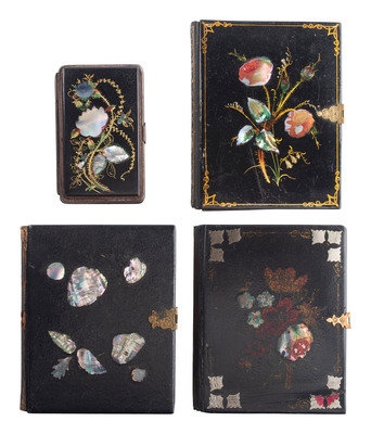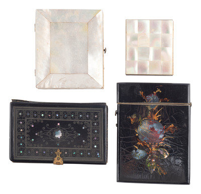 [EARLY PHOTOGRAPHY]. A group of 13 cases or accesories with mother-of-pearl inlay, including: