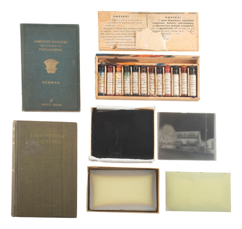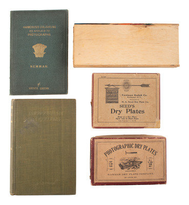 [With:] JOHNSON, George Lindsay. Photography in Colours. New York: E.P. Dutton and Company, 1917 (wear to extremities, some interior toning and occasional spotting). -- The Principles and Practice of Harmonious Coloring, in Oil, Water, and Photographic Colours: Especially as Applied to Photographs on Paper, Glass, and Silver-Plate. London: James Newman, 1863 (light wear to extremities). -- Box of Photographic Dry Plates, manufactured by Hammer Dry Plate Company, St. Louis, MO (apears to be partial). -- Box of Seed's Dry Plates, manufactured by Eastman Kodak Co., Rochester, NY.