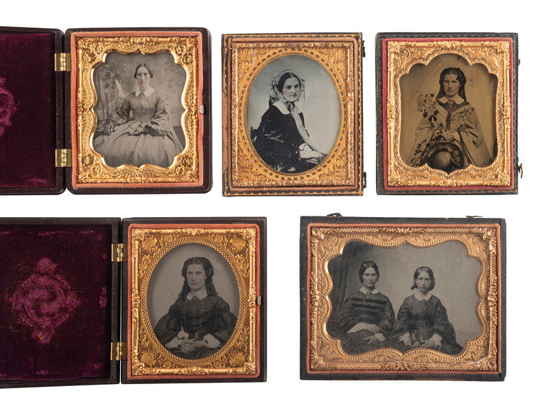 [EARLY PHOTOGRAPHY]. A group of 20 assorted portraits of women of varying ages, highlighted by half plate daguerreotype of two women, possibly sisters.