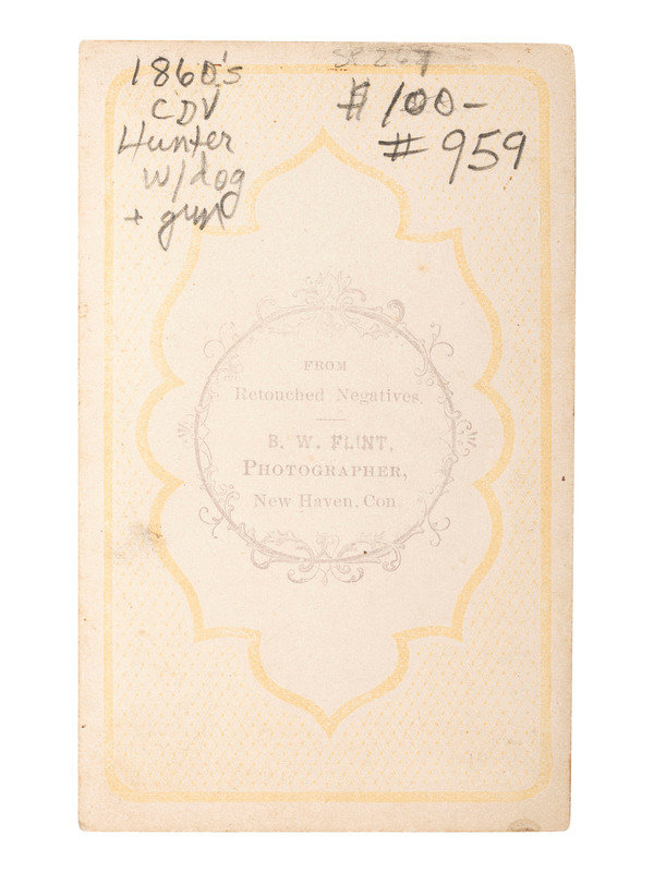 [EARLY PHOTOGRAPHY]. FLINT, B.W., photographer. CDV of armed hunter posed with his dog. New Haven, CT.