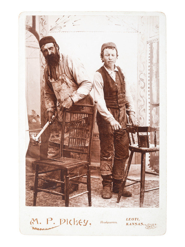 [EARLY PHOTOGRAPHY]. Dickey, M.P., photographer. Occupation cabinet card of two furniture makers. Leoti, Kansas.