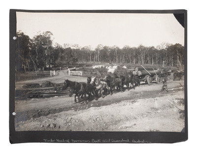 [EARLY PHOTOGRAPHY] -- [AUSTRALIA]. Album containing photographs of Queensland, Australia, incl. images of landscapes, timber hauling, and aboriginal Australians.