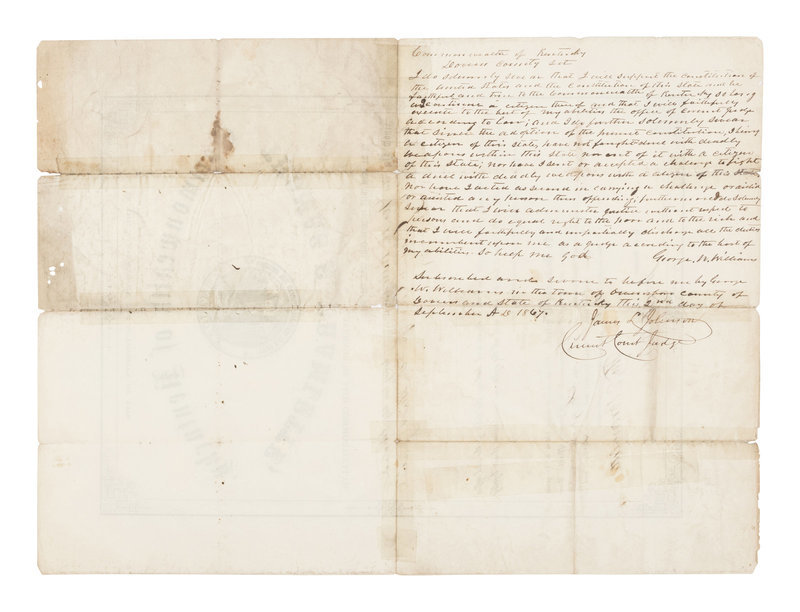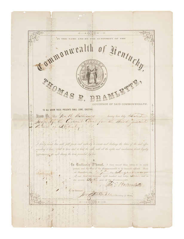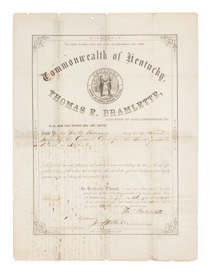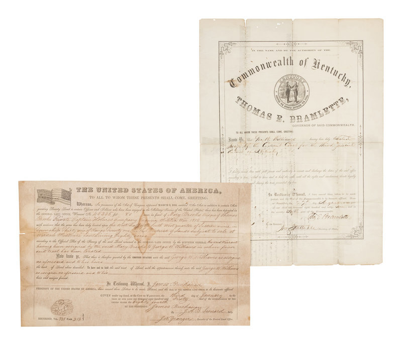 [BUCHANAN, James (1791-1868)] -- [KENTUCKY]. Partly printed land grant secretarily signed ("James Buchanan"). Washington, D.C., 3 January 1860.
