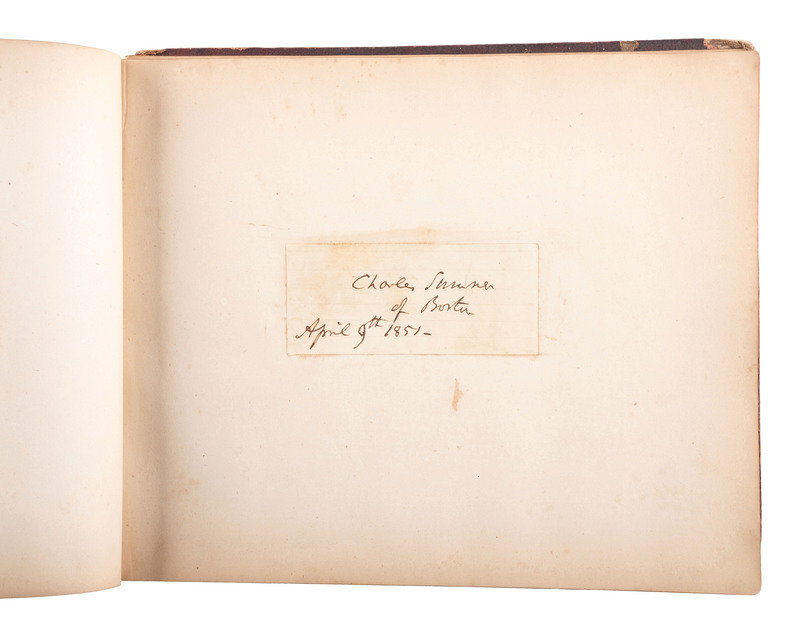 Winfield Scott ("Winfield Scott, Major Genl. [?]") -- Charles Sumner ("Charles Sumner of Boston, April 9th 1851-") -- Charles K. Williams Gov. of VT (Note dated 27 November 1850 in Rutland. Signed "Ch. K. Williams") -- John Quincy Adams autograph cover signed ("J. Q. Adams") inscribed to Edwin Harriman? Esq of Methuen, MA. -- William H. Seward ("William H Seward") -- Oliver Otis Howard ("O.O. Howard, Maj. General, Chairman Buildg. Com.") -- And 94 others, including a "Washington Irving" signature, that does not apear to be in his hand.