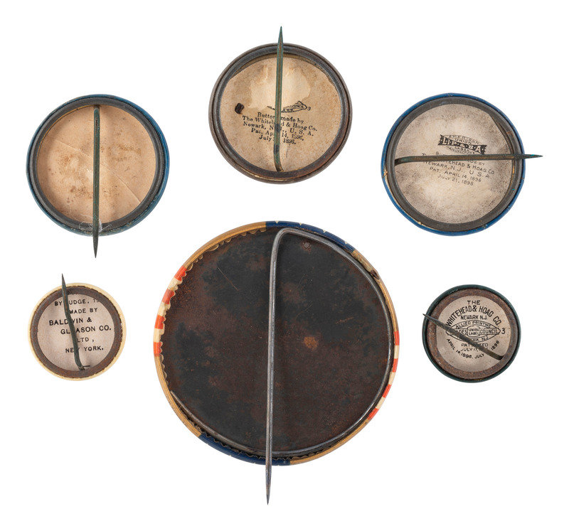 Together, 6 campaign buttons promoting William McKinley and Theodore Roosevelt for the 1896 and 1900 elections. Condition generally good to very good, some with toning and wear to paper labels on reverse.