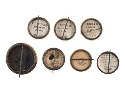 4 buttons promoting Alton B. Parker for president, featuring bust portraits of Parker, ranging in size from 1 1/4 in. to 1 3/4 in. dia. (some with light toning, 3 with original back paper although one has partial loss).