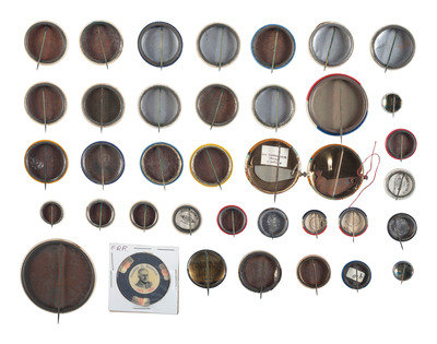 [POLITICS]. A group of 38 political buttons involving Franklin D. Roosevelt, James M. Cox, Harry Truman, and World War II efforts.