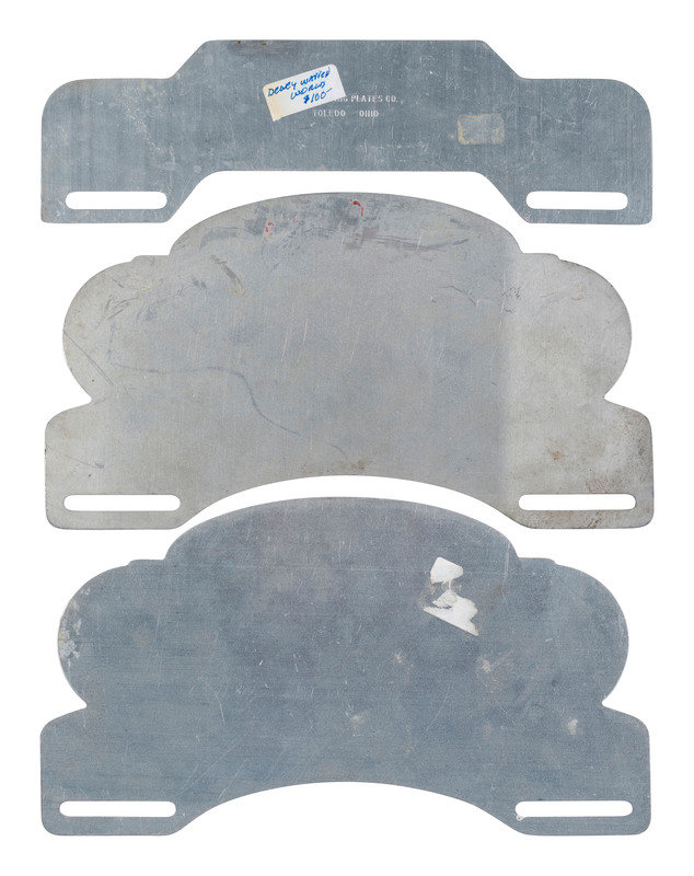 [With:] 3 x 10 in. license plate attachment with slogan "The World Needs Dewey-Warren" (tarnish, some scratching to surface).