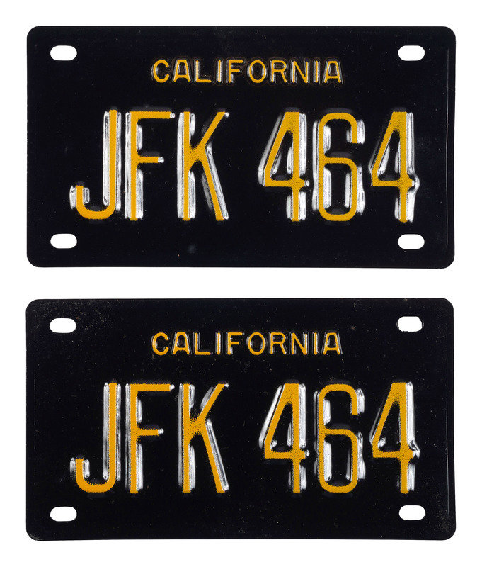 [With:] California / JFK 464. 2 1/4 x 4 in. metal license plate (near excellent).