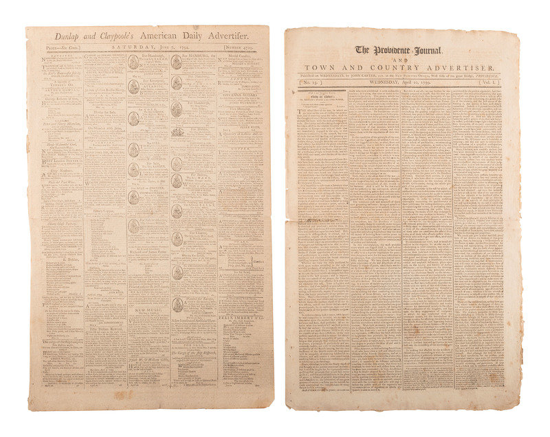 [NEWSPAPERS] -- [18TH CENTURY]. A group of 5 early American newspapers, 1793-1799.