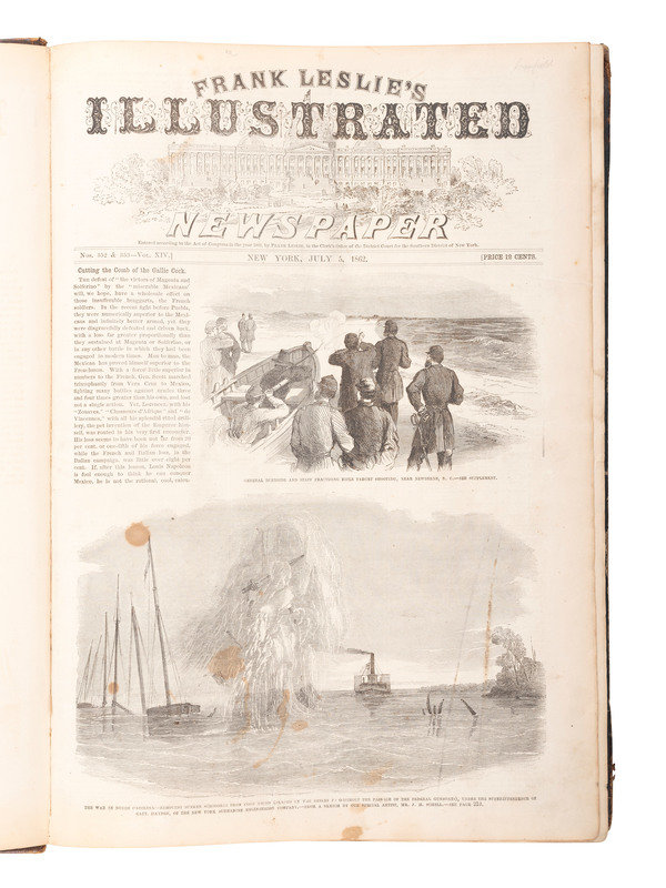 Frank Leslie's Illustrated Newspaper. Bound volume. 23 issues (incomplete). New York: 5 July-27 December 1862.