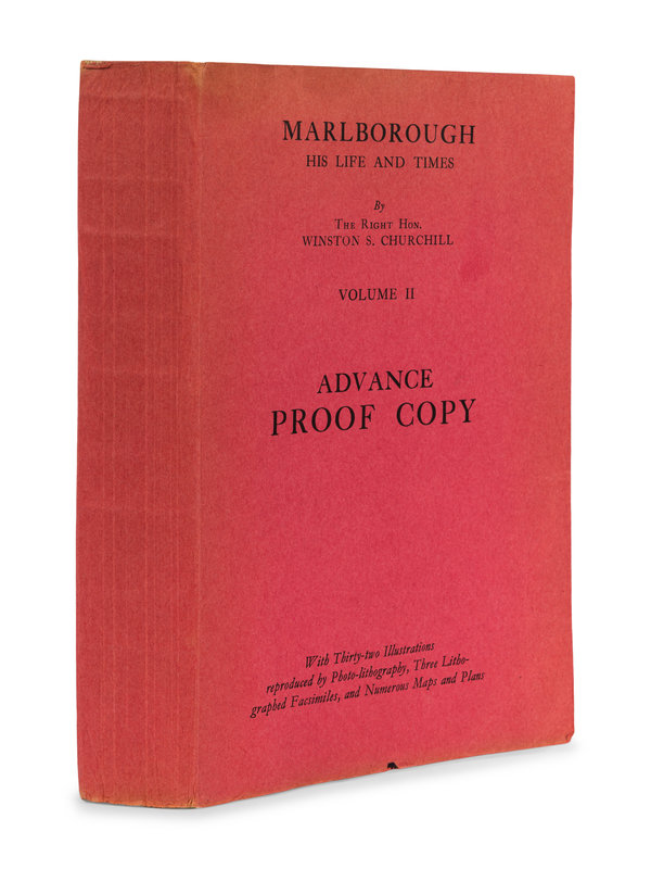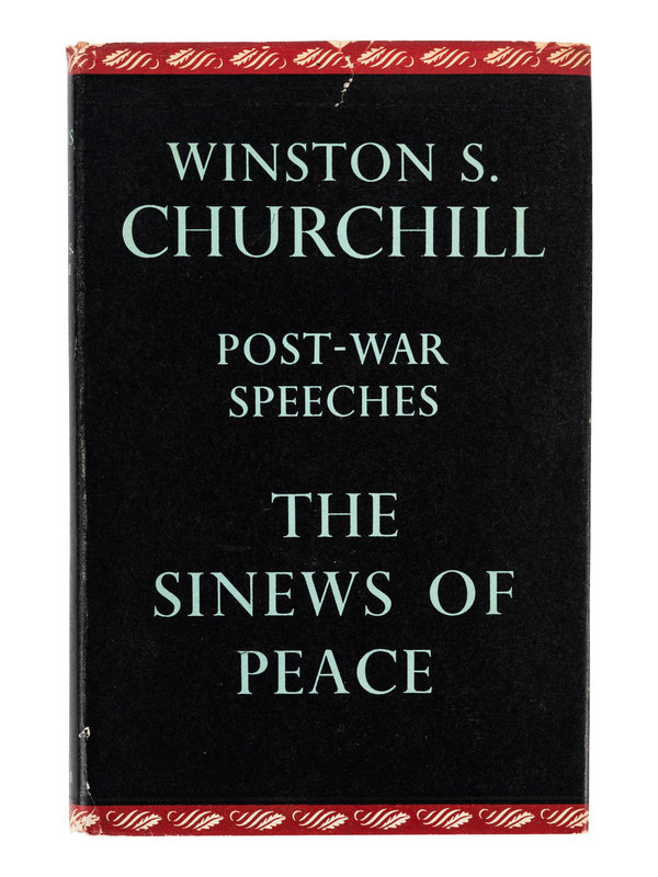 Arms and the Covenant. 1938. Woods A44(a). -- Great Contemporaries. 1937. Woods A43(a). -- Into Battle. 1941. Woods A66(a). -- The Sinews of Peace Post-War Speeches. 1948. Woods A124. -- Marlborough his Life and Times. 1934. Vol. II only. Variant binding not mentioned by Woods. Woods A40(a). -- Together, 5 works in 5 volumes, all published in London, all 8vo, all in original cloth or printed wrappers, most with dust jackets, FIRST ENGLISH EDITIONS, condition generally good.