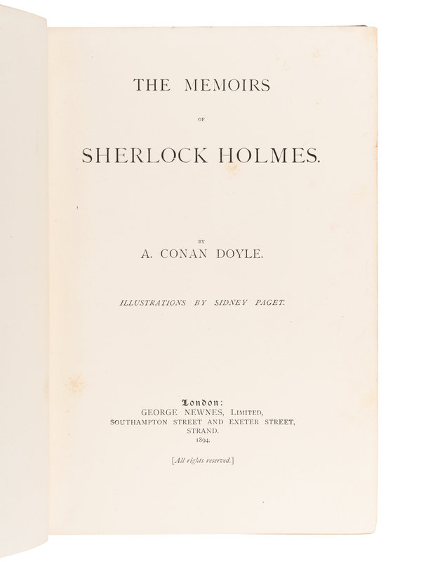 DOYLE, Arthur Conan, Sir (1859-1930). The Memoirs of Sherlock Holmes. London: George Newnes, Limited, 1894.
