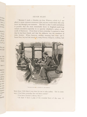 8vo. Half-title, frontispiece and illustrations by Sidney Paget. (Some light spotting as usual.) Original gilt- and black-stamped blue cloth, beveled edges, edges gilt (some wear, particularly to extremities, spine slightly leaned, some soiling).