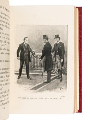 8vo. Half-title, monochrome frontispiece and 15 monochrome plates by Sidney Paget. (Pale spots to a few leaves, some minor creasing.) 20th-century red morocco gilt, edges gilt, original red cloth front cover and spine bound in at rear.