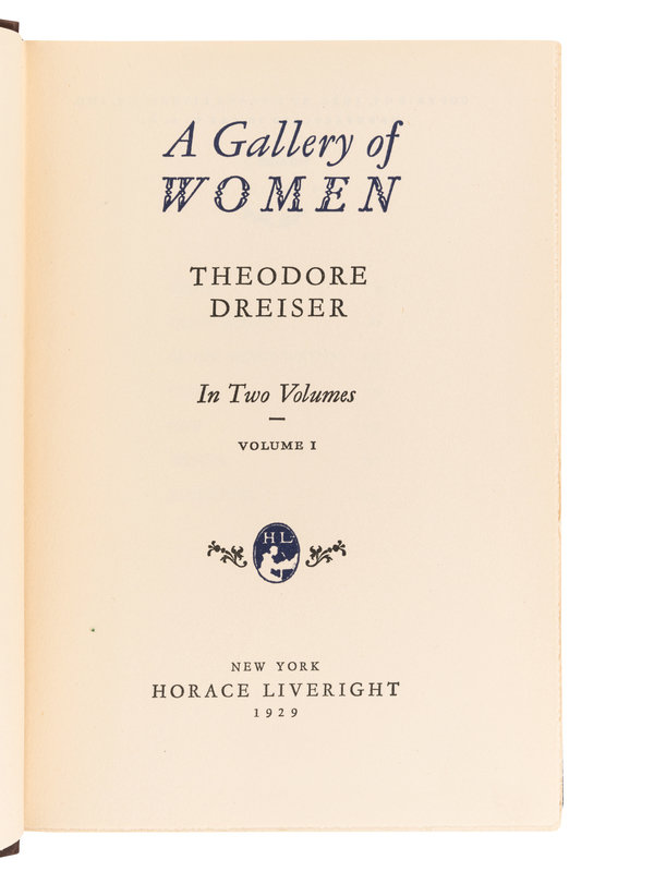 DREISER, Theodore (1871-1945). A Gallery of Women. New York: Horace Liveright, 1929.