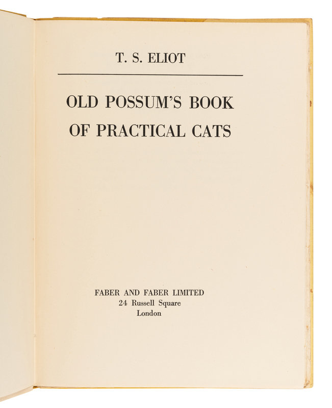 ELIOT, Thomas Stearns (1888-1965). Old Possum's Book of Practical Cats. London: Faber and Faber, 1939.
