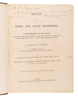 [EXPLORATION -- AFRICA]. PEKE, John Hanning (1827-1864), James Augustus GRANT (1827-1892), and Daniel OLIVER, editor (1830-1916). Botany of the Speke and Grant Expedition. London: Taylor and Francis, 1872.