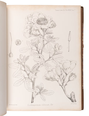 FIRST EDITION, PRESENTATION COPY, INSCRIBED BY GRANT: "W.? R.? R. Cheyne Equ. with kind regards from J. A. Grant. 13 June 1872 late Bengal." With plates after W. H. Fitch, who "remains the most outstanding botanical artist of his day in Europe" (Blunt, The Art of Botanical Illustration). Nissen BBI 1468; Stafleu & Cowan 7057.