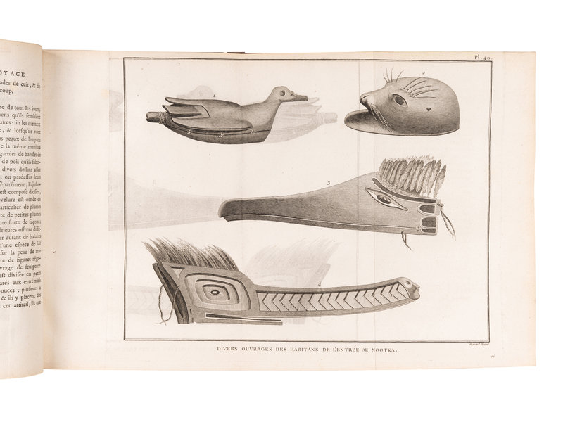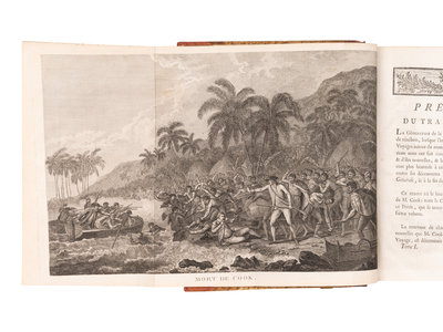 [EXPLORATION -- PACIFIC]. COOK, Capt. James (1728-1779), and Capt. James KING (1750-1784). [Third voyage]. Troisieme voyage de Cook, ou voyage a l'ocean Pacifique... pour faire des decouvertes dans l'hemisphre nord, pour determiner la position & le'tendue de la cote ouest de l'Amerique Septentrionale, sa distance de l'Asie, & resoudre la question du passage au nord. Execute sous la direction des Capitaines Cook, Clerke & Gore, sur les vaisseaux la Resolution & la Decouverte, en 1776, 1777, 1778, 1779 & 1780. Translated from English into French by Jean Nicholas Demunier. Paris: Hotel de Thou, 1785.