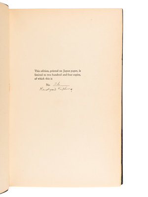 LIMITED EDITION, number 26 of 204 copies, SIGNED BY RUDYARD KIPLING of Kipling's last collection of stories and poems.