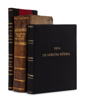 PERON, Maria Eva Duarte. La Razon de Mi Vida. Buenos Aires, [1951]. Original boards gilt. FIRST EDITION. SIGNED. -- Discusion del Proyecto de Decreto Sobre el Tribunal de la Inquisicion. Cadiz, 1813. Contemporary calf-backed boards. -- OVIEDO, Juan Antonio de. Vida de Nuestra Señora, Repartida en Quinze Principales Mysterios. Mexico: Joseph Bernardo de Hogal, 1726. Contemporary limp vellum with ties; folding case. -- POLANCO, Rafael Vicente Alvarez. Prosa de Antigua. [Lima, Peru], 2012. Original half calf; slipcase. LIMITED EDITION, number 5 of 125 copies. -- Together, 4 works in 4 volumes, all 8vo, condition generally good.