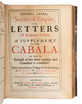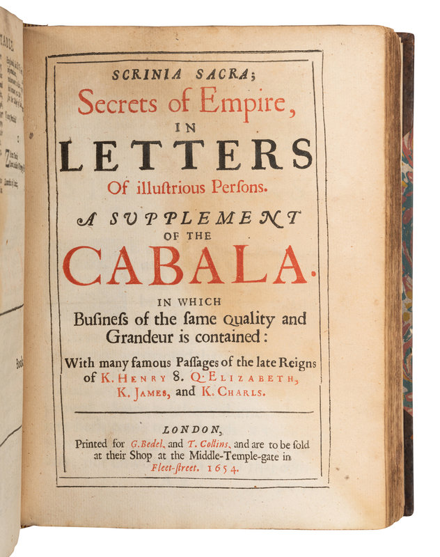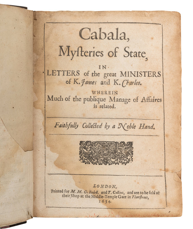 [LAW & GOVERNMENT]. Cabala, Sive Scrinia Sacra, Mysteries of State and Government in Letters. London: Printed for G. Bedel and T. Collins, 1654.