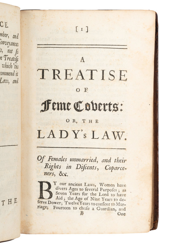 [With]: HYDE, Robert. A Treatise of Feme Coverts; or, The Lady's Law. London: Printed by E. and R. Nutt and R. Gosling, 1732. Later full calf (losses to front free endpaper and title page, toning). Provenance: "L. Janes."