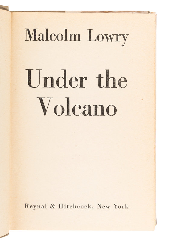 FIRST EDITION. The earliest version of Under the Volcano was completed in 1940 and for the next four years Lowry shopped it around to various publishers, while he continually edited the work. The manuscript was nearly lost in a fire in 1944; immediately afterwards Lowry inserted numerous references to infernos throughout the story, which was finally published in 1947.