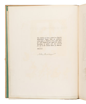 FIRST EDITION, “Edition de Luxe,” LIMITED EDITION, number 260 of 625 copies of which 600 were for sale, SIGNED BY RACKHAM. With Rackham's silhouette illustrations.