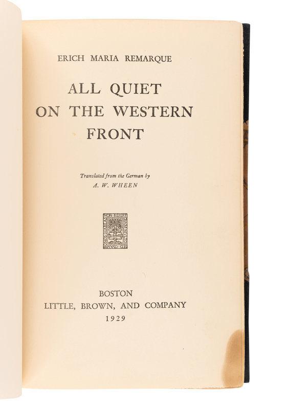 REMARQUE, Erich Maria (1898-1970). All Quiet on the Western Front. Boston: Little, Brown, & Company, 1929.