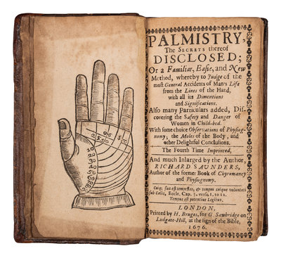 SAUNDERS, Richard. Palmistry, the Secrets thereof Disclosed. London: H. Bruges for G. Sawbridge, 1676.