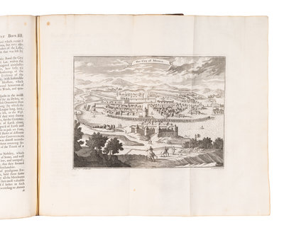 Five parts in one volume, folio (345 x 221 mm). Engraved frontispiece portrait, 2 engraved maps (one folding), 6 folding engraved plates. (Old repair to blank margin of title, a few leaves with soiling.) Contemporary English panelled calf (rebacked preserving old endpapers, hinges repaired, some light wear). Provenance: John Alexander Dowie (1847-1907), Scottish-Australian evangelist and faith healer (note indicating sale by A. C. McClurg & Co. to); Ramsay (note, 14 February 1910).