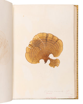 8vo (241 x 177 mm). Album of 119 specimens each mounted to a leaf and identified by its Latin name in ink (with occasional additions in red ink) in the lower right corner. All bound in on stubs in contemporary green morocco gilt, gilt "LB" monogram in each corner (spine sunned, a few scuffs).