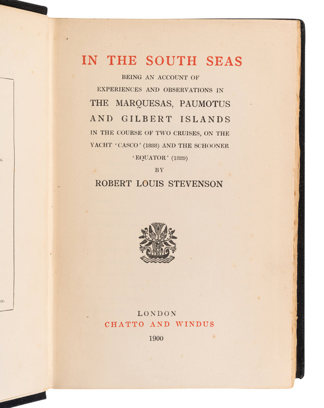 STEVENSON, Robert Louis (1850-1894). In the South Seas. London: Chatto & Windus, 1900.