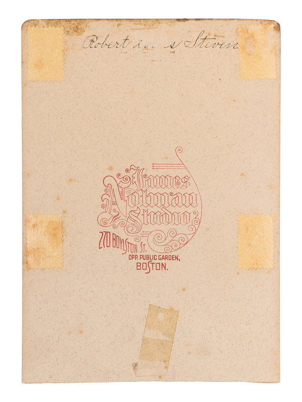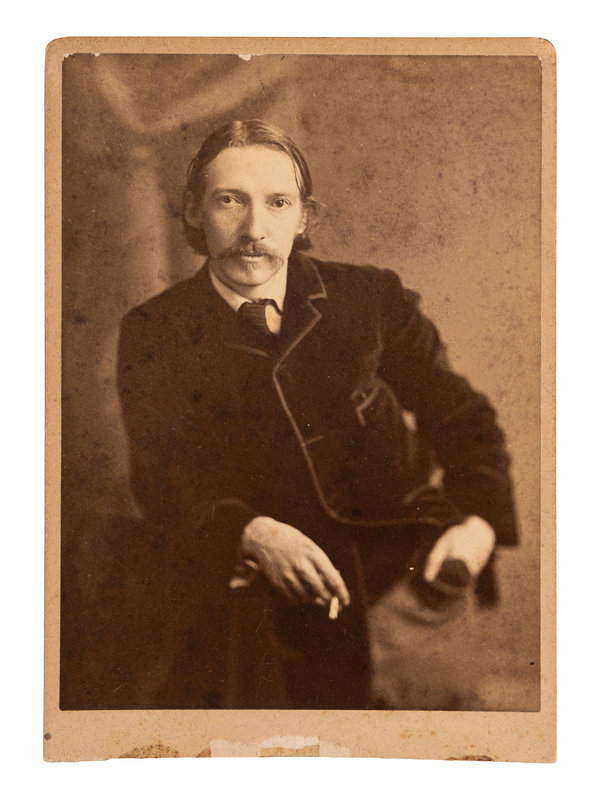 [Also laid in:] STEVENSON. Cabinet card half-portrait of Stevenson leaning, with one hand in pocket and the other holding cigarette, ca 1890s by James Notman Studio in Boston (printed verso).