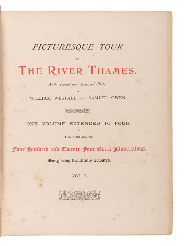 FIRST EDITION, EXTRA-ILLUSTRATED with plates primarily from Ackermann’s History of the University of Oxford, Boydell’s A History of the River Thames, Cooke’s Views on the River Thames, and Ireland’s Picturesque Views on the River Thames. Additions include: Original painting of Cookham by Daniel Sherrin bound into the front of vol. I. -- Original painting of Bisham by Daniel Sherrin bound into vol. II after p. 86. -- Large folding "Map of The River Thames, from Oxford to its Mouth" at the rear of vol. II. -- Large folding "View of London from Lambeth" before p. 143 in vol. III. See Abbey, Scenery 435.