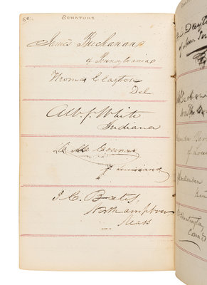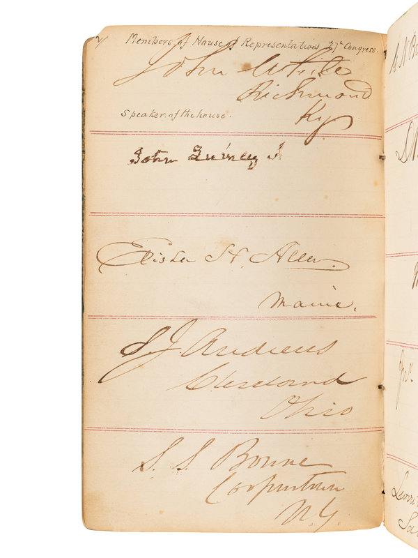 Compiled by John Van Buren during the 27th Congress, signed by him and dated July 1843 on the pastedown. Some members of Congress kept albums containing the signatures of their fellow legislators as was customary.