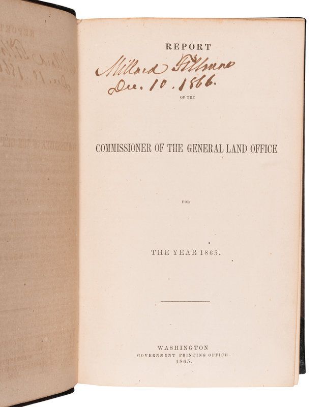 [FILLMORE, Millard (1800-1874), his copy]. Report of the Commissioner of the General Land Office for the Year 1865. Washington: Government Printing Office, 1865.